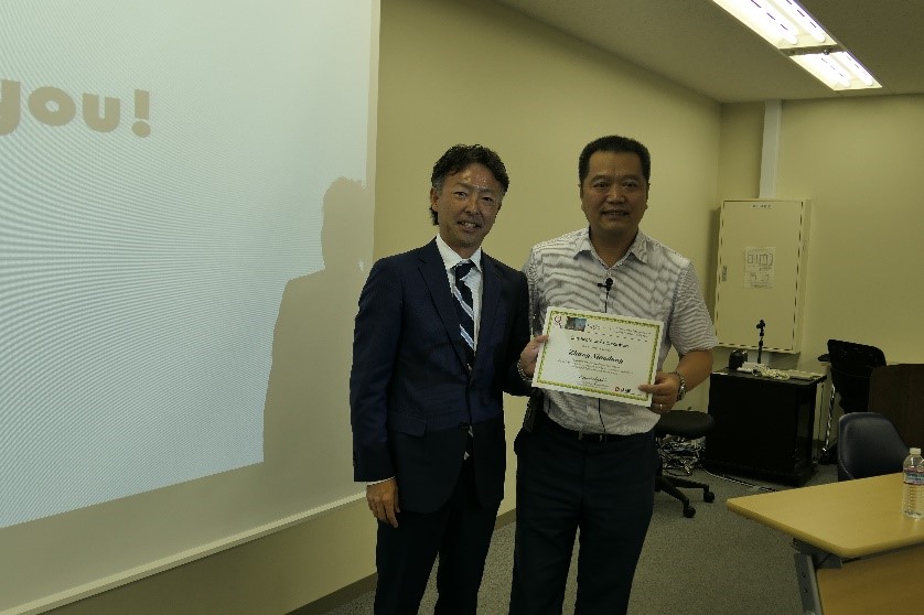 会议主持人玉川大学永井博士和张晓东博士合影留念,并颁发论文发表证书。